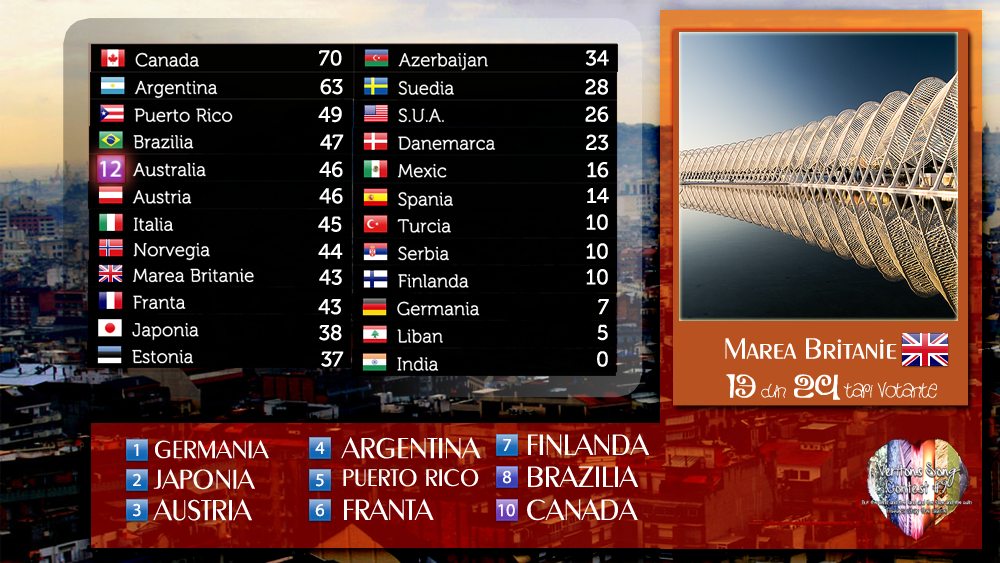 Nu aveti pentru ce Asa cum am mai spus, a fost plin de muzica buna editia asta si imi pare rau ca am fost nevoita sa renunt la unele melodii care meritau deasemenea multe puncte :-s