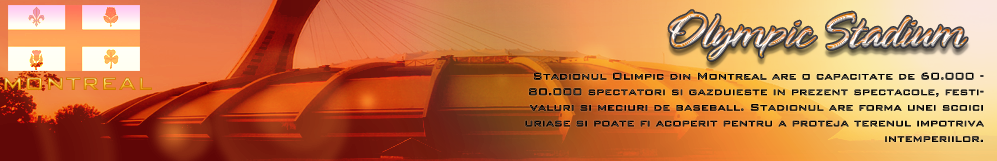 ![]() Bine v-am regasit in cadrul unui show de prezentare al pieselor din concurs. Aceasta editie cuprinde 25 de participanti, gata sa va incante cu piesa aleasa. Fara o sa mai lungim, trecem mai departe si va prezentam arena si prezentatorii acestei editii, care sunt, fara doar si poate, destul de interesanti. ![]() Stadionul a fost ales in principal pentru capacitatea mai mult decat suficienta, dar si pentru ca ne aduce aminte de un moment frumos si important din istoria recenta a tarii noastre. La 14 ani, Comăneci a devenit o stea a Jocurilor Olimpice de Vară din 1976 de la Montreal, Québec. Nu numai că a devenit prima gimnasta care a obținut scorul perfect de zece la olimpiadă (de șapte ori), dar a și câștigat trei medalii de aur (la individual compus, bârnă și paralele), o medalie de argint (echipă compus) și bronz (sol). ![]() Lucy Maud Montgomery, (spunându-i-se mereu „Maud” de către familie și prieteni) și cunoscută publicului ca L. M. Montgomery, (30 noiembrie 1874 – 24 aprilie, 1942) a fost o scriitoare canadiană, celebră pentru seria de romane ce a început cu Anne of Green Gables, publicat în 1908. Este una dintre cele mai apreciate scriitoare canadiene. Leonard Cohen (n. 1934, Montreal) este un poet, cântăreț și romancier evreu canadian.Este autorul unui număr impresionant de volume de versuri bine primite de critică dar și al unei discografii care a făcut din el idolul mai multor generații. Primul sau disc a fost remasterizat și vocea lui groasă, guturală a fost modificată pentru a semăna cu cea a lui Bob Dylan, pe atunci în mare voga. A început să imprime la studiorile din Nashville, cele care l-au lansat pe Elvis Presley și vocea sa a revenit la tonalitatea sa normală. Clara Hughes (n. 27 septembrie 1972 în Winnipeg, Manitoba) este o ciclistă și patinatoare canadiană. Ca și ciclistă Clara a participat în anii 1991, 1995 și 1999 la Jocurile Panamericane iar între anii 1990, 1994 și 2002 la Jocurile Commonwealth. Clara Hughes câștigă în Atlanta la Jocurile Olimpice de vară din 1996 de două ori medalie de bronz la ciclism rutier (104 km) și la individual (26,1 km). Démarrer édition! ....O invitam pe scena pe castigatoarea VSC10! ![]() ![]() Acestea au fost piesele editiei cu numarul 11. Puteti vota incepand de astazi si pana martea viitoare, 30 octombrie 2012. Results show-ul se va desfasura pe 3 noiembrie, ora 21:00. Bonne chance / Mult succes / Good luck ! ![]() ![]() ![]() ![]() ![]() ![]() ![]() ![]() |